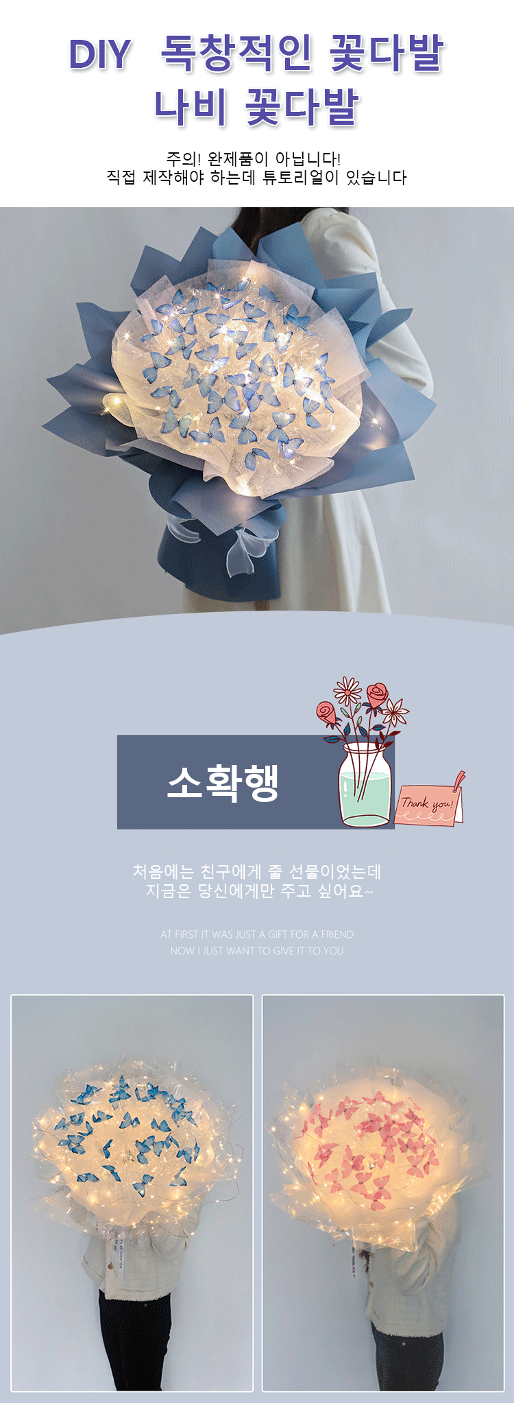 손으로 만든 크리에이티브 DIY 나비 꽃다발 세트 - 지금 바로 구매하세요!